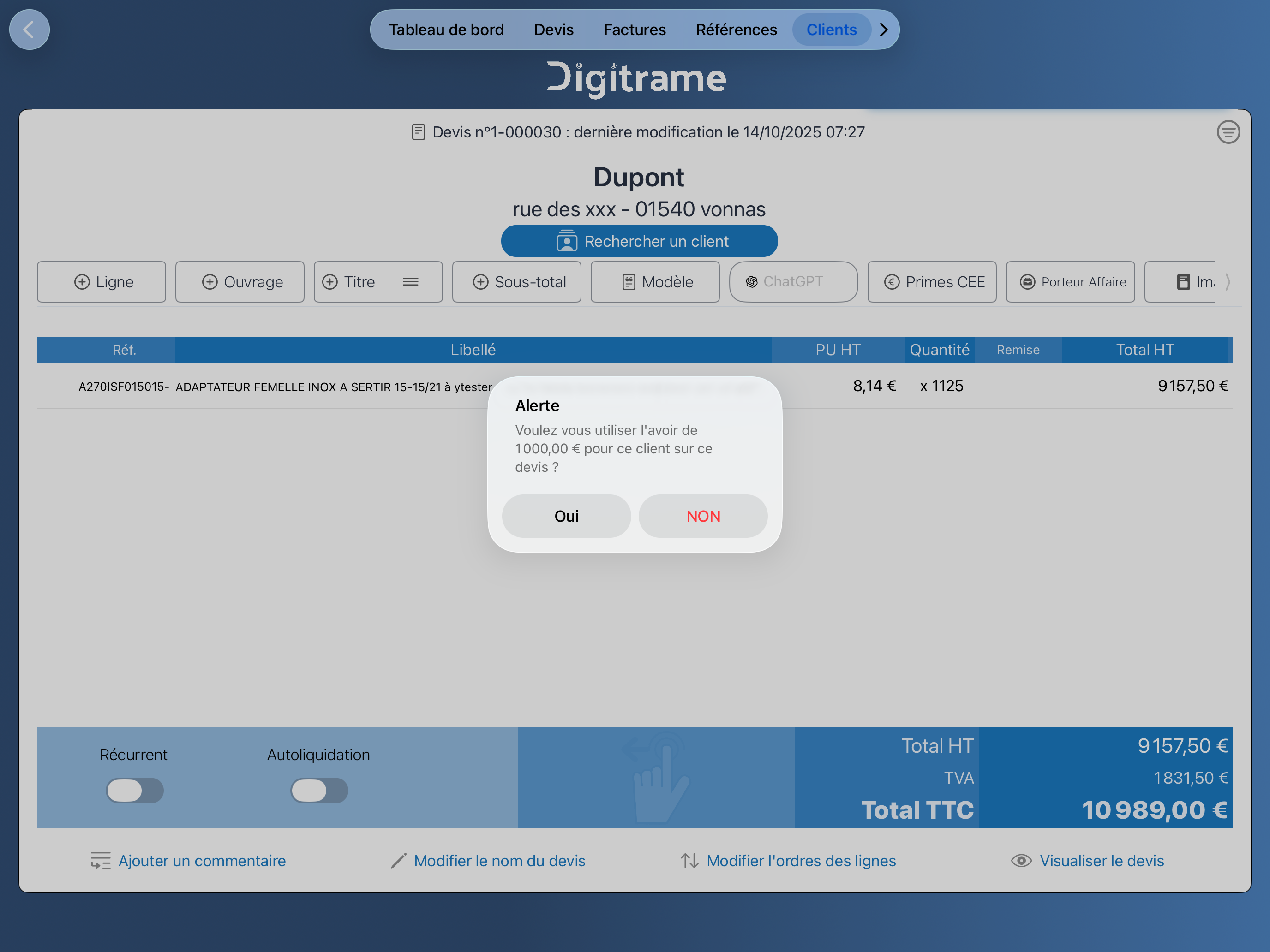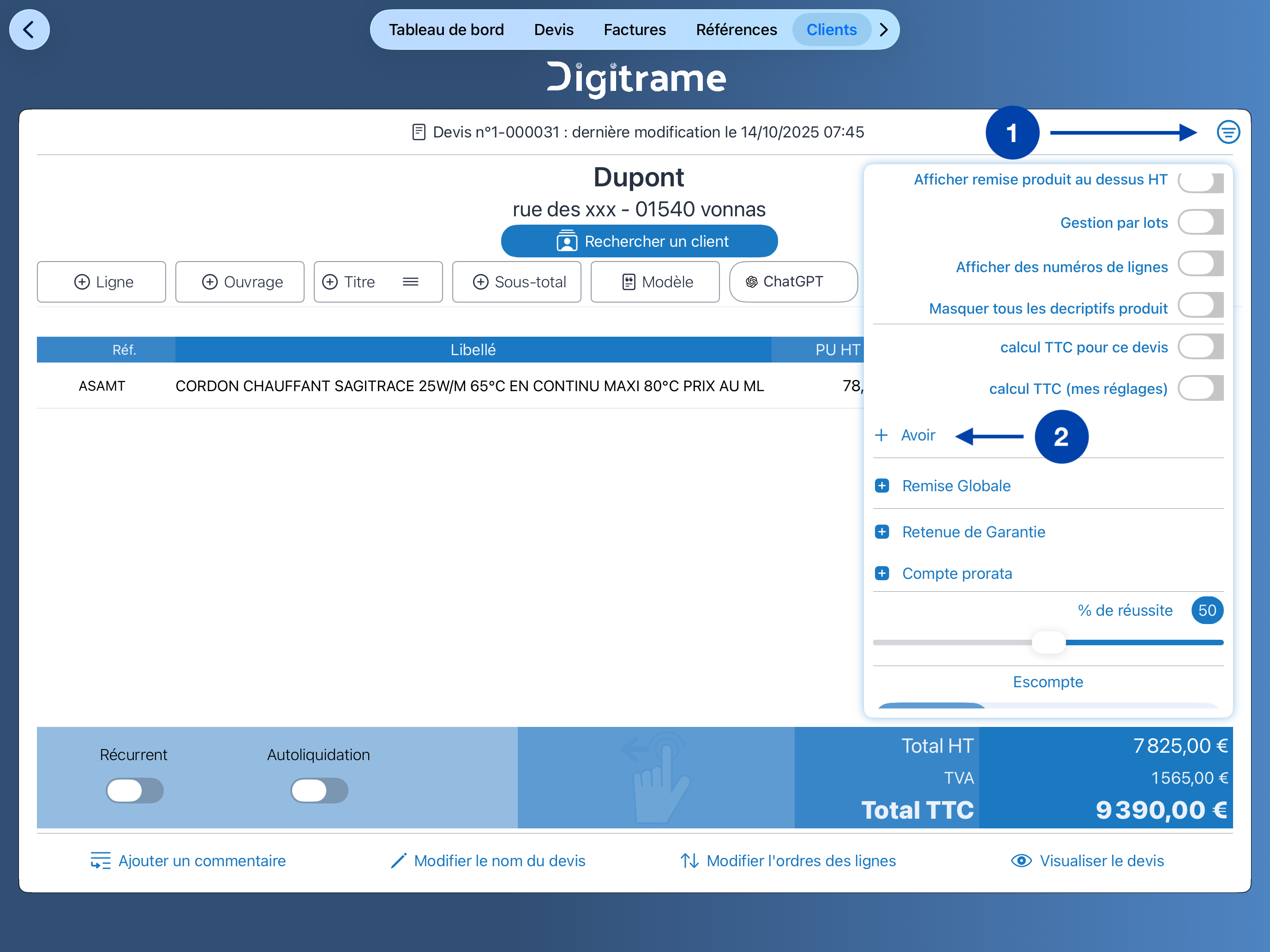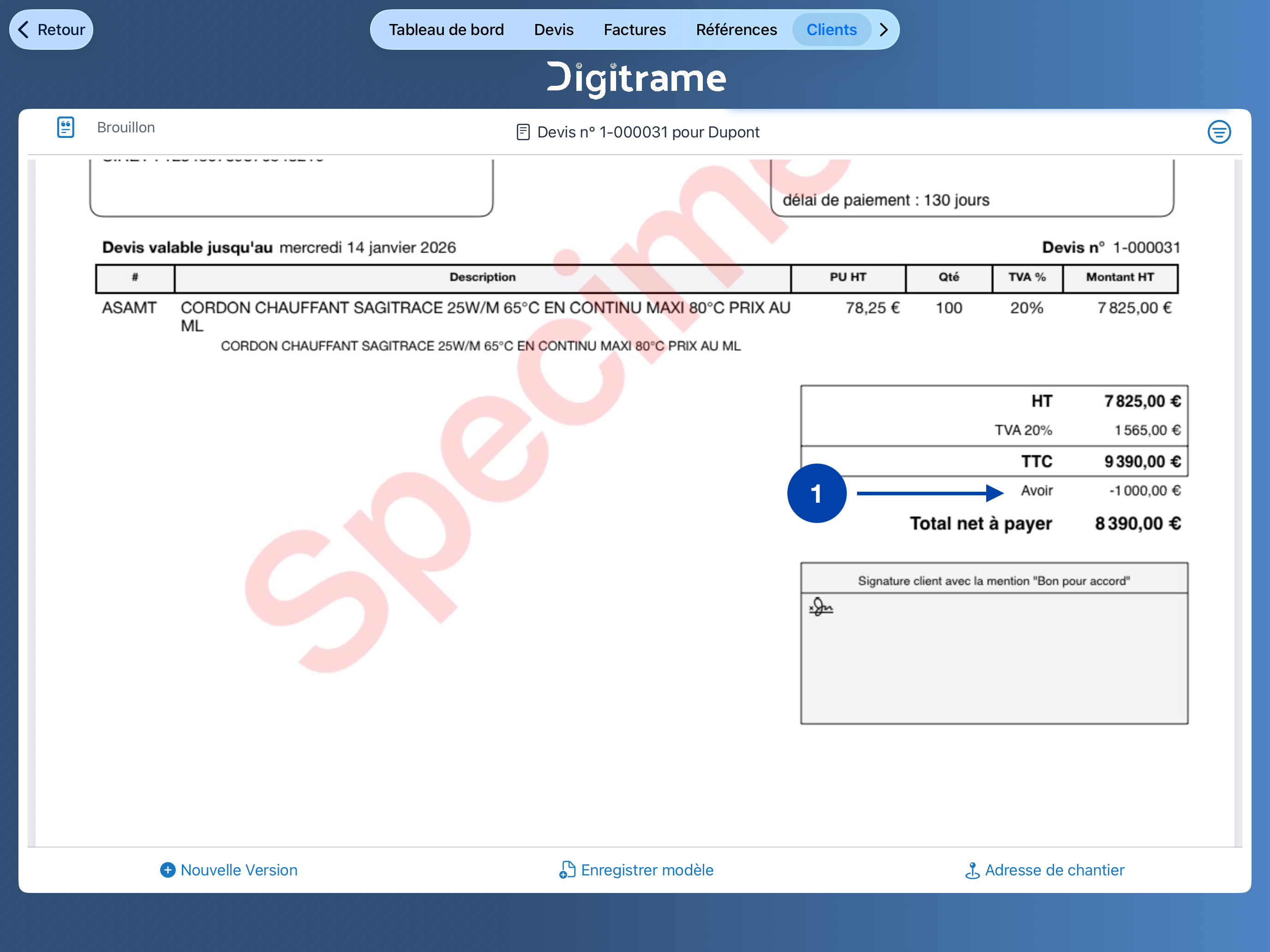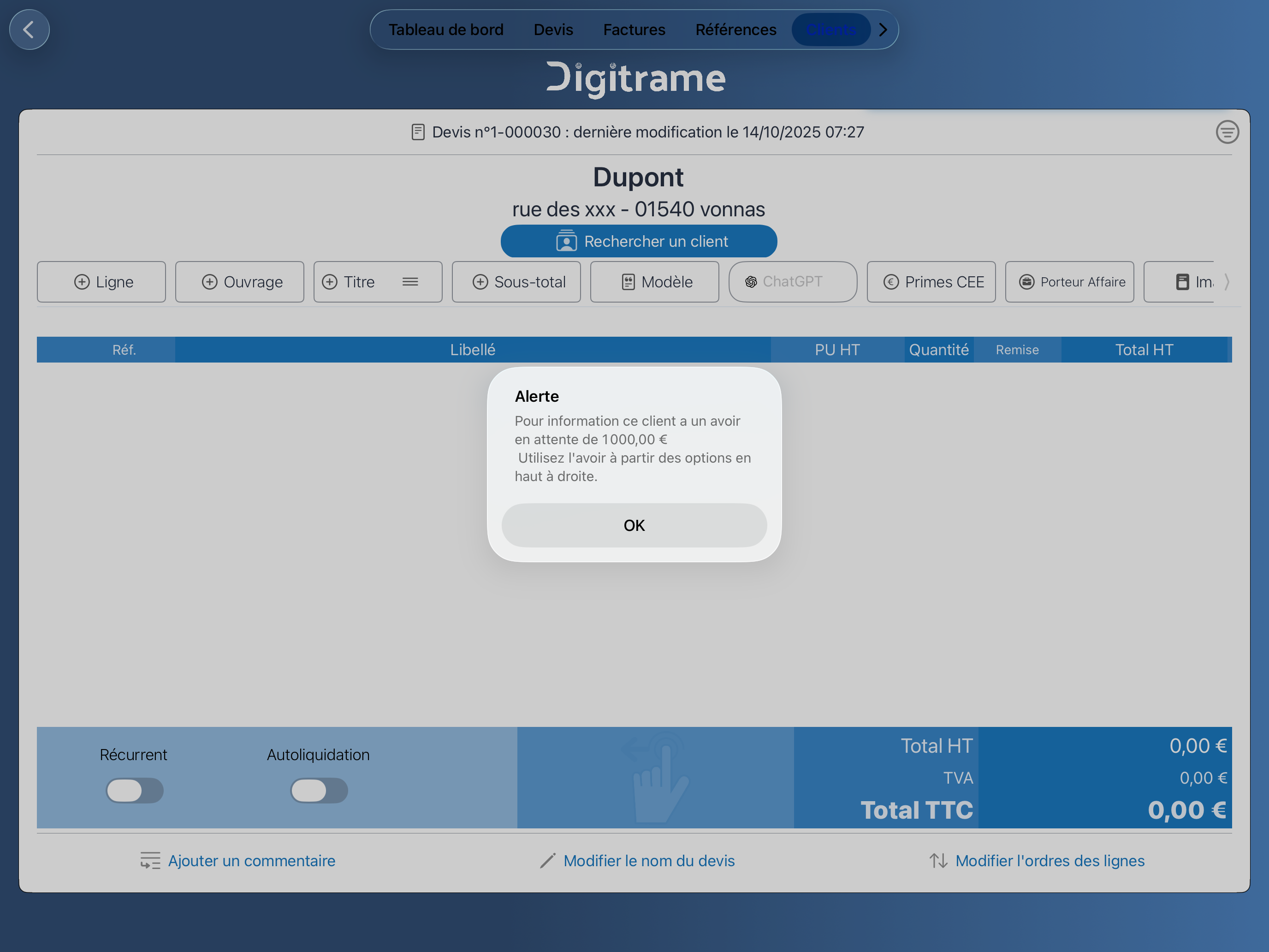 Créez un nouveau devis pour votre client.