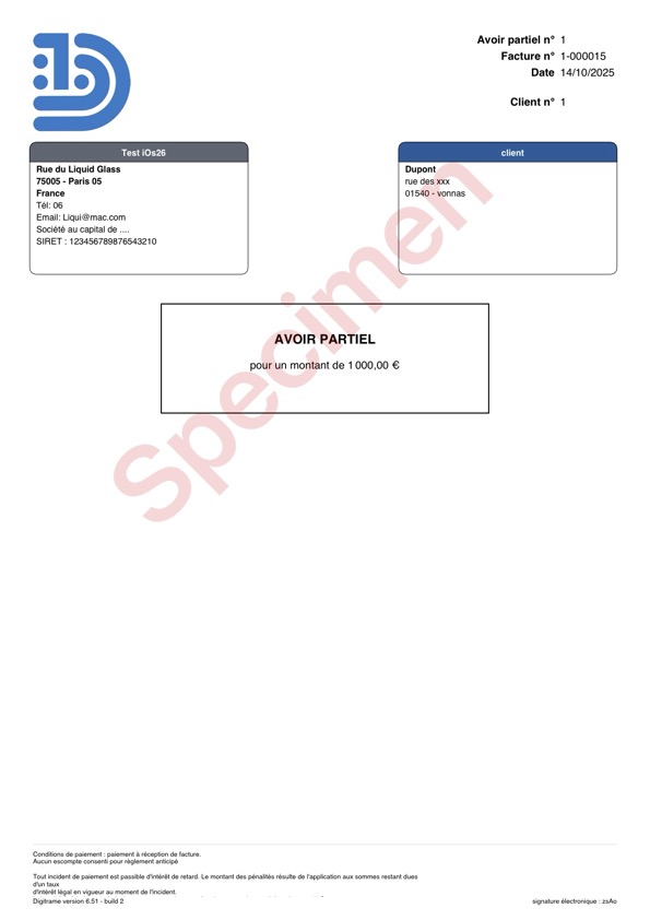 Enregistrez l’avoir : un PDF est automatiquement généré pour que vous puissiez le remettre à votre client.