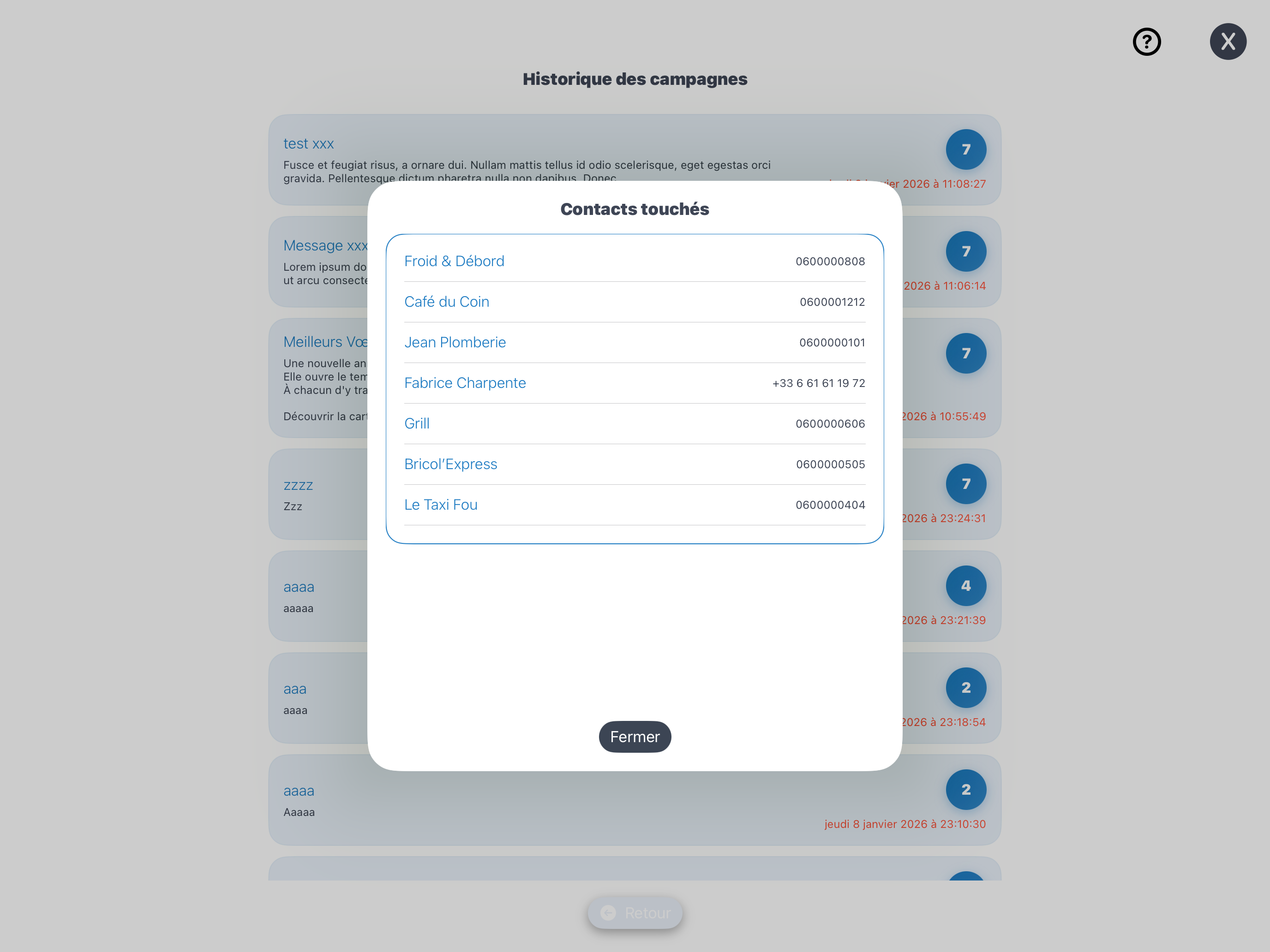 Cliquez sur Envoyer pour enregistrer la campagne et envoyez le message aux contacts sélectionnés.