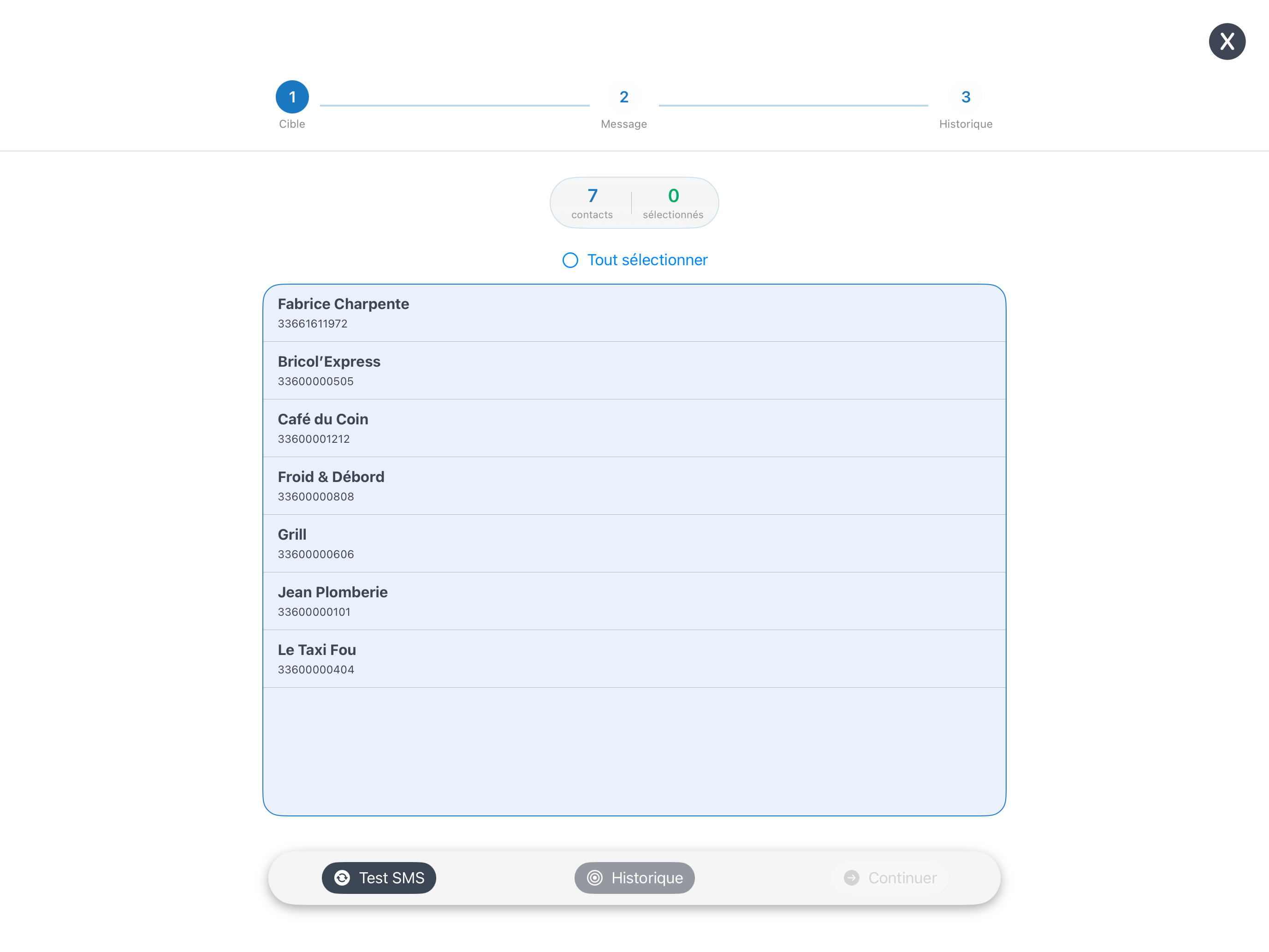📂 Sélection des contacts depuis votre base clients
