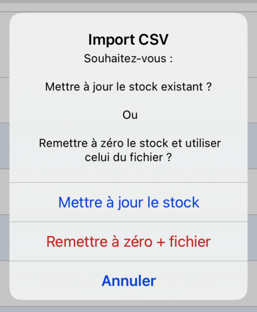 Avant de lancer l’import, un choix est obligatoire pour savoir comment traiter votre stock :