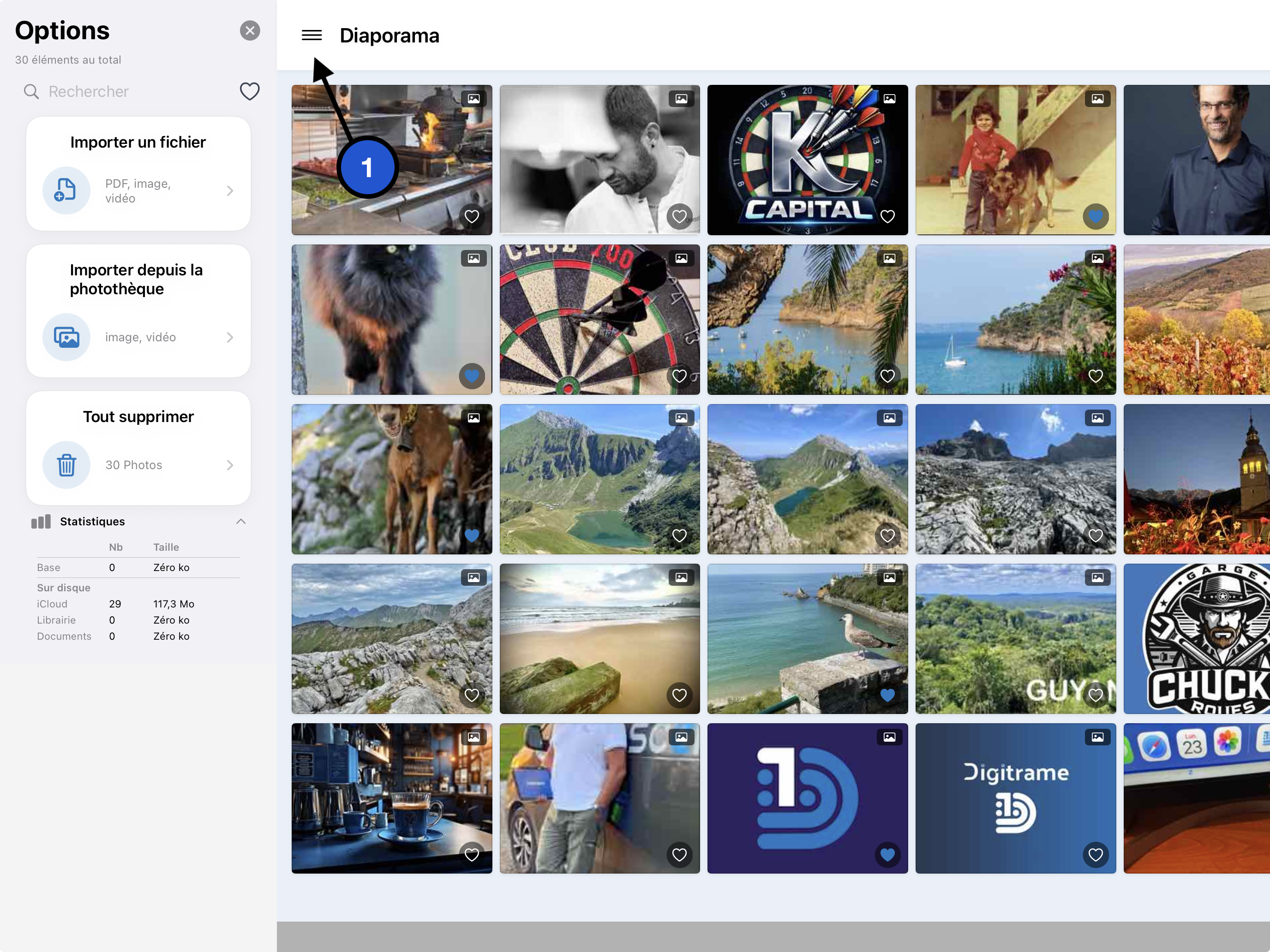 Le Diaporama permet la lecture automatique de l’ensemble des photos.