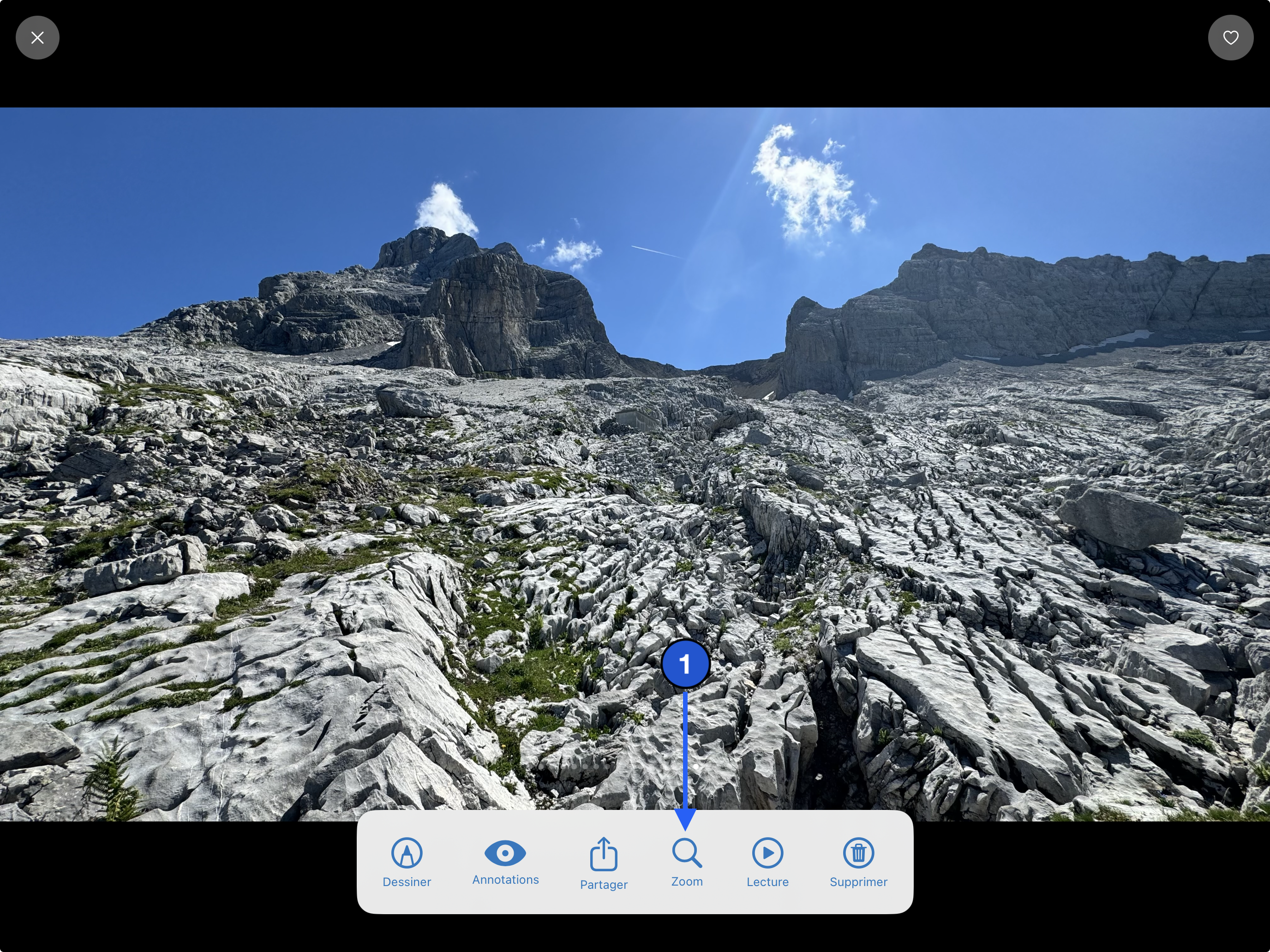 Un clic sur une vignette ouvre l’image en mode "pleine écran" pour permettre :