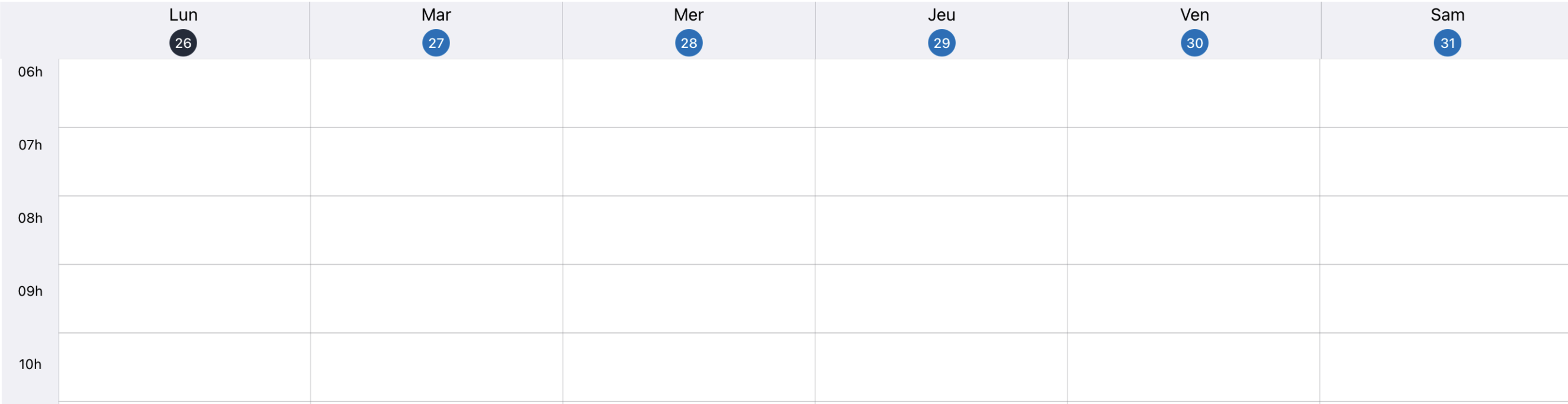 Objectif : comprendre la semaine en un coup d’œil, repérer les créneaux libres, les journées chargées et les éventuels conflits.