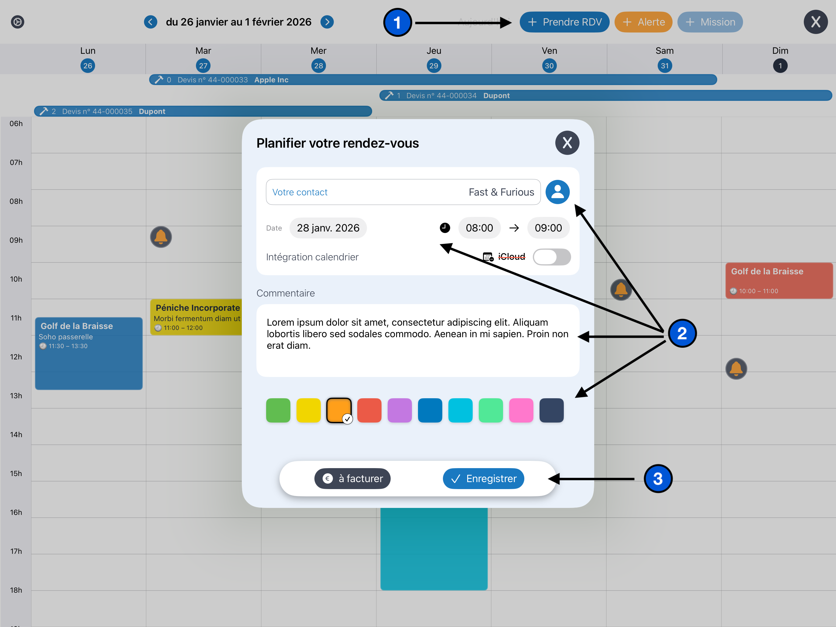 ➡️ Le rendez-vous apparaît immédiatement dans le planning.