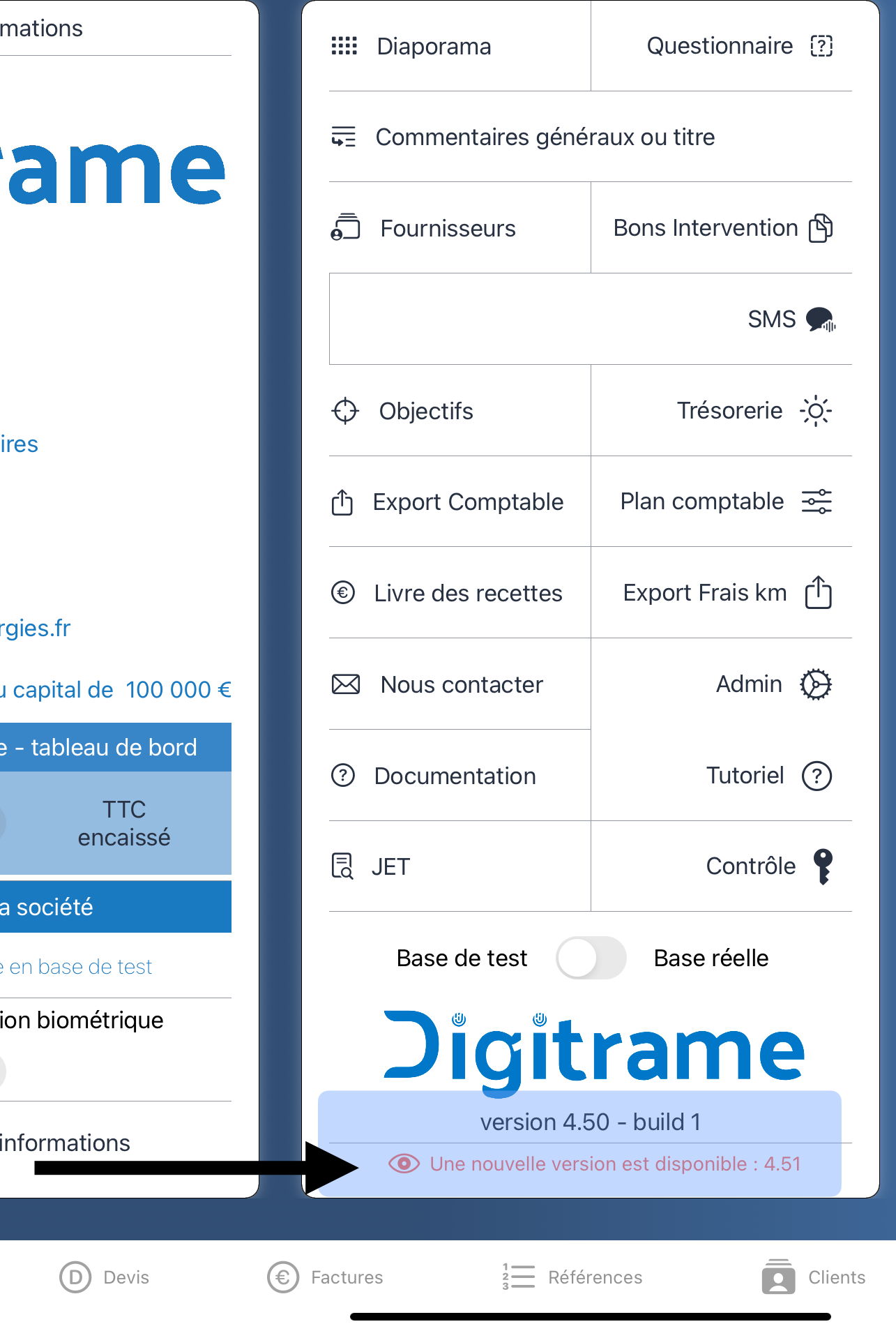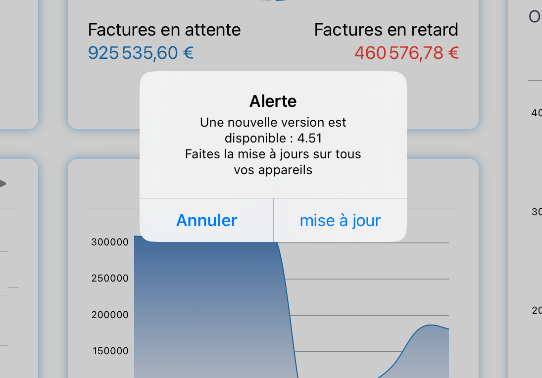 Tableau de bord - mise à jour Application