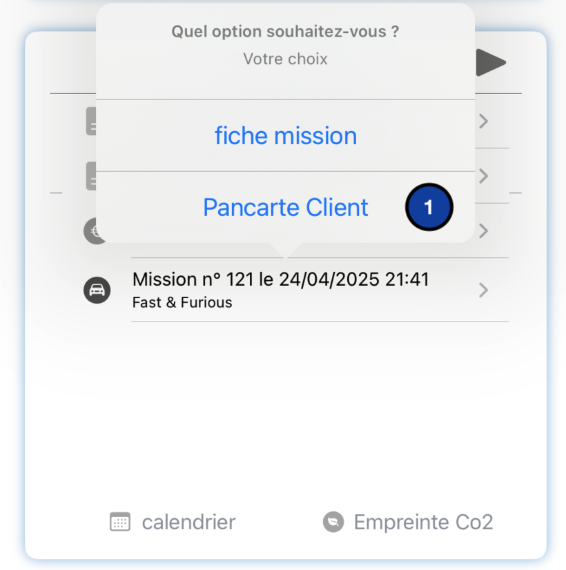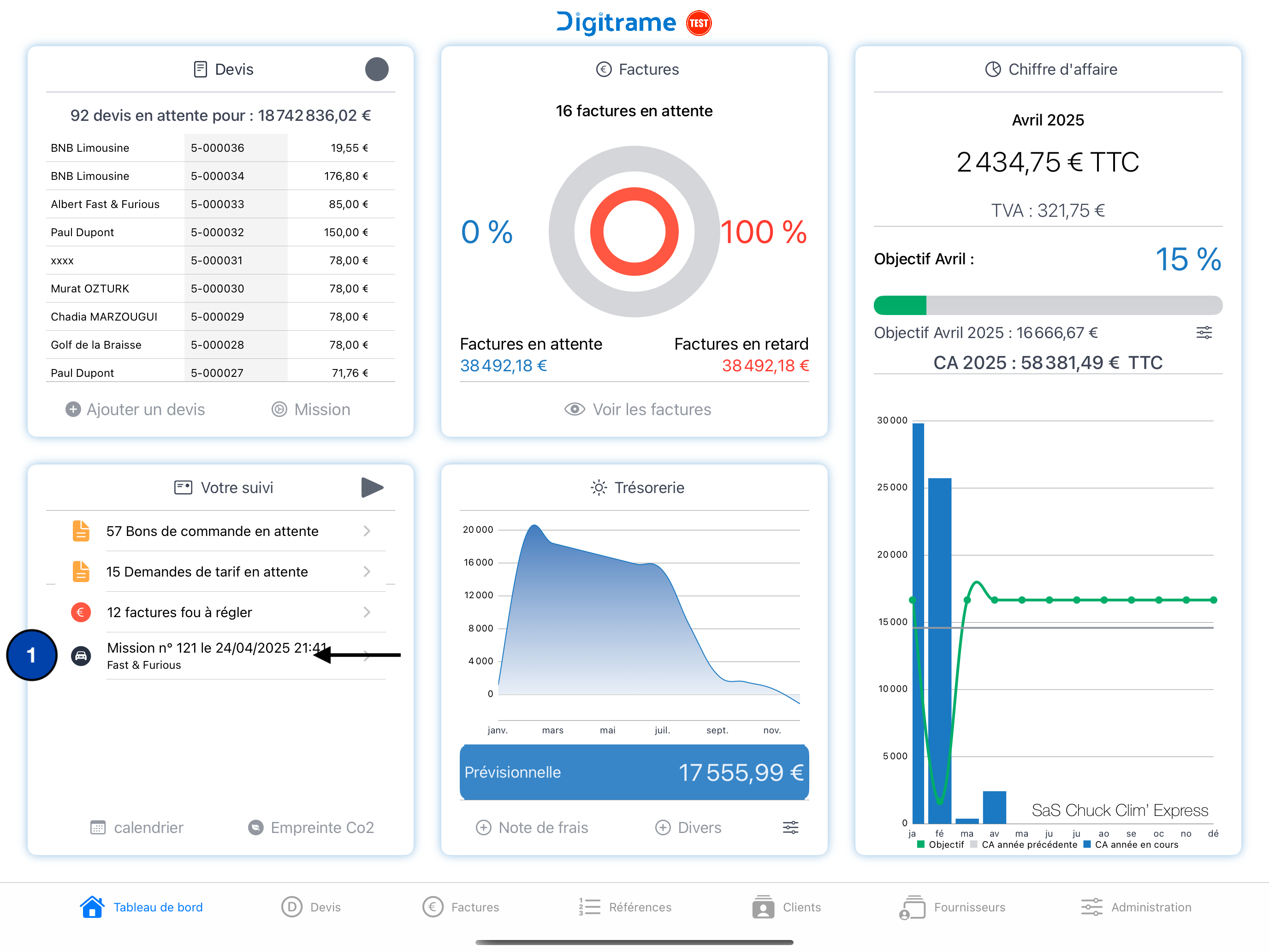 Une fois la mission créée, elle apparaît automatiquement dans l’écran Suivi des missions dans votre tableau de bord.